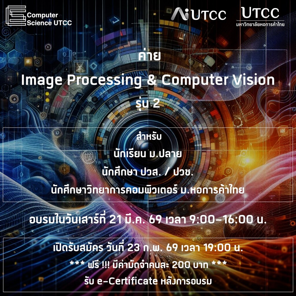 หลักสูตรวิทยาการคอมพิวเตอร์ ม.หอการค้าไทย จัดอบรมในหัวข้อ “ImageProcessing & Computer Vision รุ่น 2” ในวันเสาร์ที่ 21 มีนาคม 2569 เวลา 9:00 – 16:00 น. ณ ห้องปฏิบัติการคอมพิวเตอร์ 15201B อาคารหอประชุม (อาคาร 15) ชั้น 2 ม.หอการค้าไทย