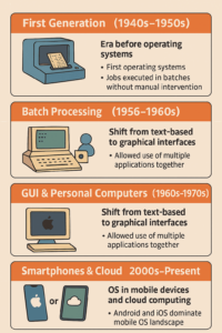 - GeeksforGeeks. (2025). History of Operating System. Retrieved August 24, 2025, from https://www.geeksforgeeks.org/operating-systems/evolution-of-operating-system/